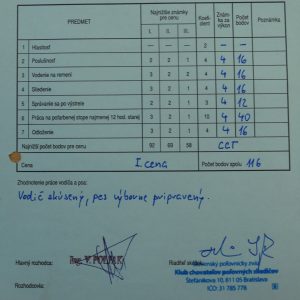 | 16.-17.9.2017 | VSMP | Komjatice | I. cena, 301 b. CACT, CCT | ![]() |