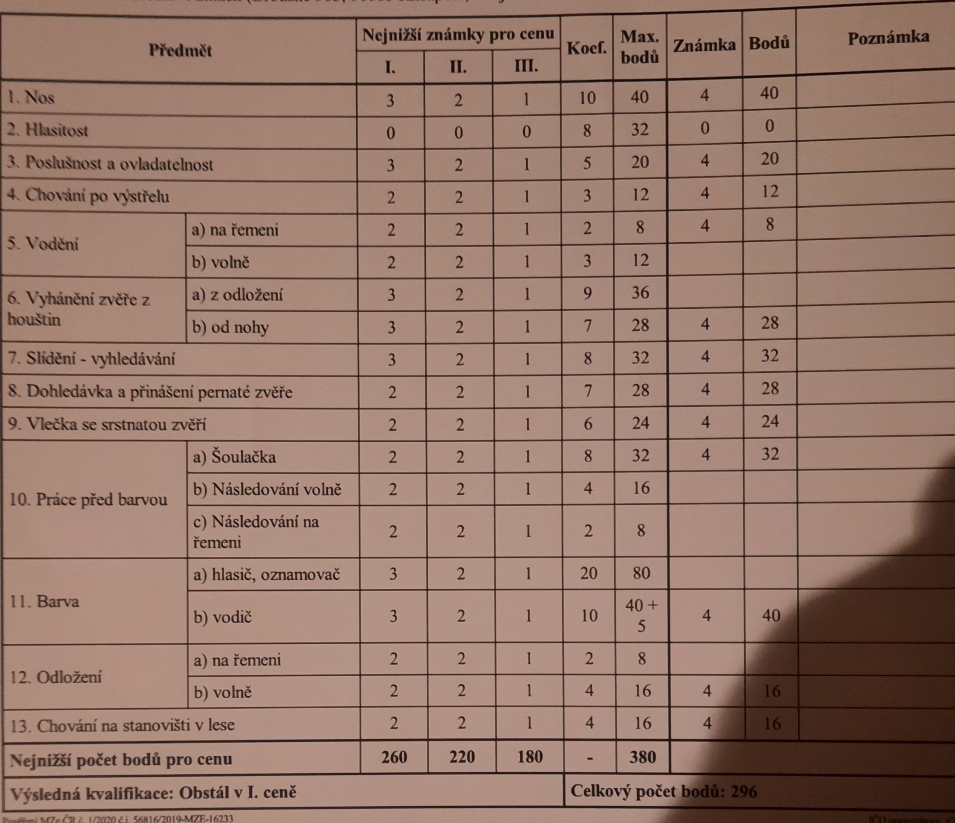 21.10.2023 LZ Prostějov I. cena 296 b.